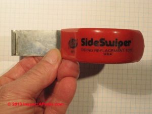 Самый популярный инструмент для демонтажа и замены панели Malco SRT2 Sideswiper. Крюк инструмента располагается под углом к ручке, благодаря чему достигается действие рычага, необходимое при замене поврежденной панели. Возможность частичного демонтажа панелей с последующей их замены еще одно преимущество винилового сайдинга перед металлическим.