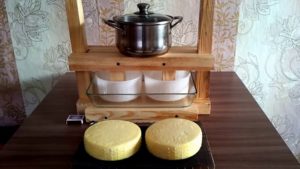 Совет! Чтобы защитить деревянные части от влаги, которая так или иначе будет присутствовать в процессе приготовления сыра, рекомендуется обработать их льняным либо любым другим пищевым маслом.