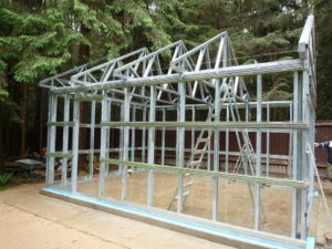 - Устойчивость к воздействию влаги. Каркас из оцинкованной стали можно собирать в любое время года, не боясь его деформации или гниения, как в случае с древесиной.