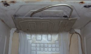 - Затем удалите старый испаритель и срежьте верхушку холодильника на 5-10 сантиметров выше морозильной камеры.