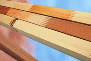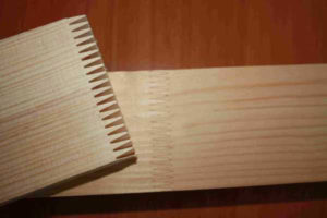 Для изделий, которые будут испытывать серьезные нагрузки при эксплуатации, применяют сращивание на шип (клиновидный или зубчатый). При этом за счет увеличения площади склеиваемых деталей соединение получает повышенную прочность, экономично используется дерево.
