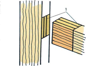 Например, при изготовлении плинтуса, который не несет на себе никакой нагрузки, доску сращивают на ус: торцы соединяемых досок обрезаются под углом 45 градусов и соединяются внахлест с помощью клея.