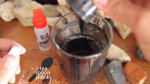 Сначала в ступке смешиваем порошки, потом добавляем связующие вещества. Доводим все до однородной пастообразной консистенции. Перекладываем в емкость для хранения. Перед использованием хорошенько размешиваем, если требуется снизить вязкость, используем растворитель.