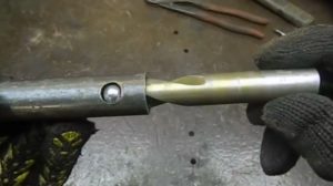 На втулку следует поместить кусок стальной трубы, который будет использоваться в качестве рукоятки. На обратном конце в обрезок вставляют гайку, которая предотвратит повреждение рукоятки.